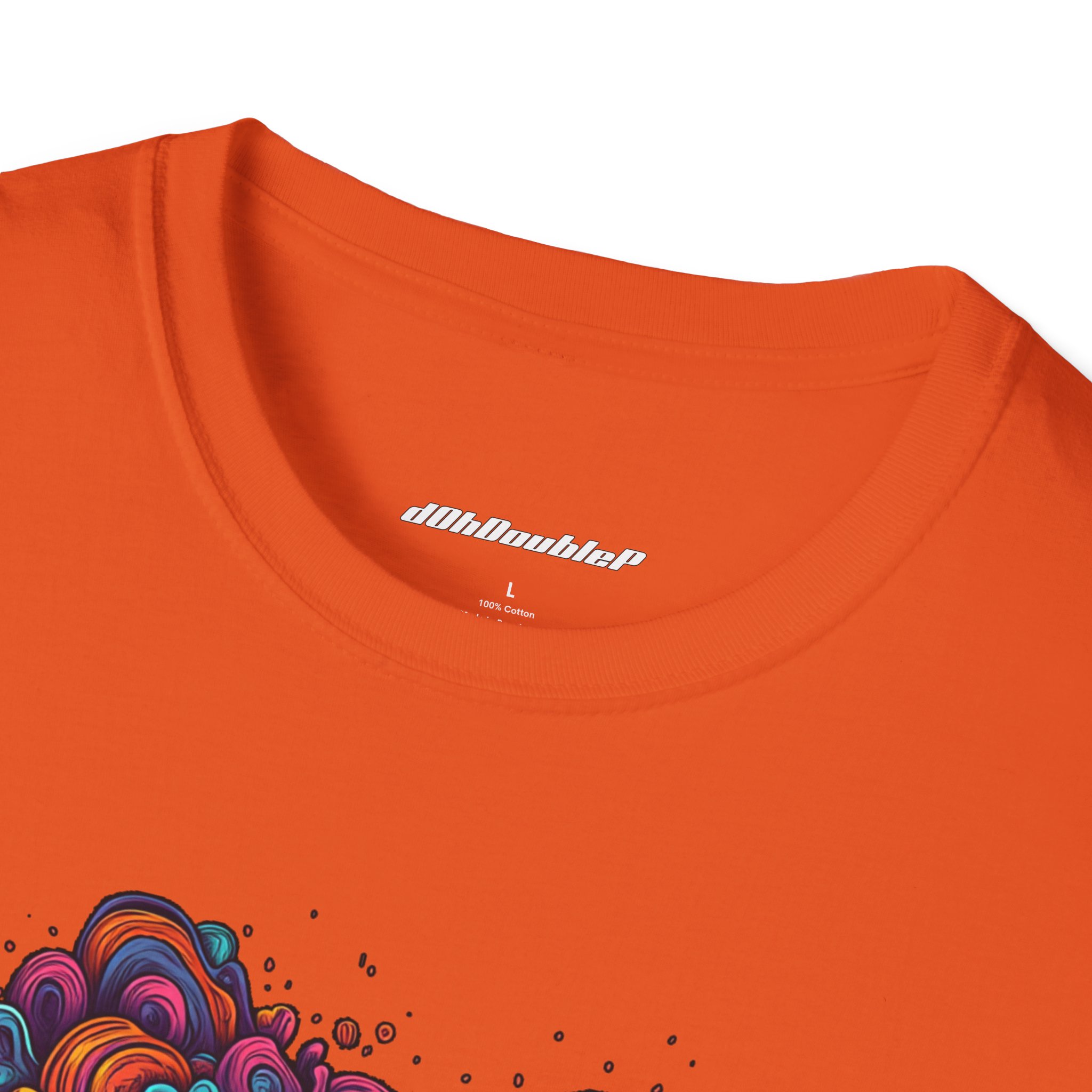 The shirt’s soft, breathable fabric and tear-away label keep the focus on comfort so the design can do the talking. The vivid DTF/DTG print holds up to regular wear while the tubular knit and shoulder tape preserve the tee’s shape over time. This piece fits into a casual, creative wardrobe: part art-statement, part everyday staple.